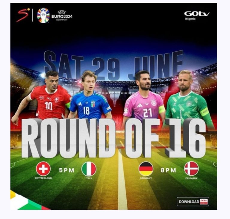 The Round of 16 matches at the ongoing Euro 2024 tournament are set to broadcast live on GOtv starting with the clash between Italy and Switzerland on Saturday.