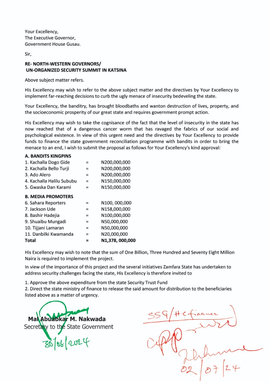 Abubakar had written a memo requesting funds to procure patrol vehicles and logistics for community protection guards, but was rejected by the governor.
