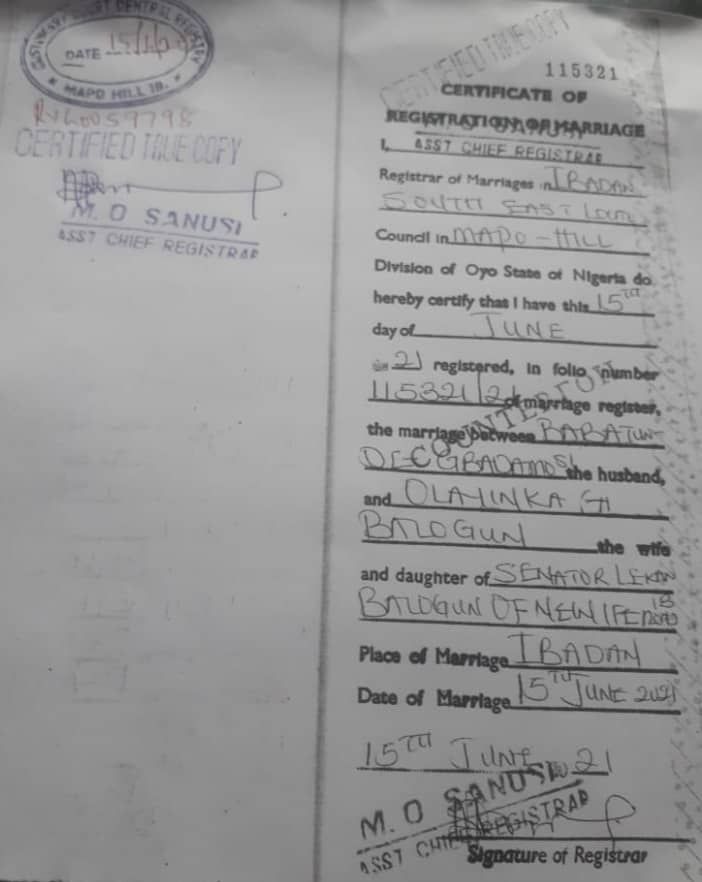 The source revealed that: “Gbadamosi was married to the said woman while still married to Sade. He cannot deny this because the marriage certificate is there for all to see. Infact, even me, I’ve seen the document. That man is very dubious , you know. He has the audacity to still be claiming Sade’s company assets as marital assets. Shouldn’t he be asking his current wife for upkeep or has she dumped him after discovering what a liar he is?” the source smirked.