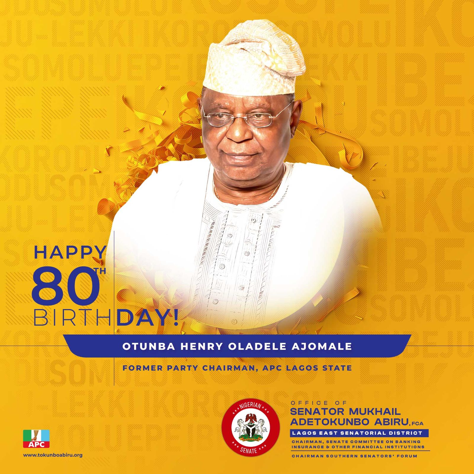 On behalf of the good people of Lagos East Senatorial District, it is with great joy that we extend our warmest congratulations to our esteemed leader and a distinguished member of the Governance Advisory Council (GAC), Otunba Henry Oladele Ajomale, as you celebrate your 80th birthday.
