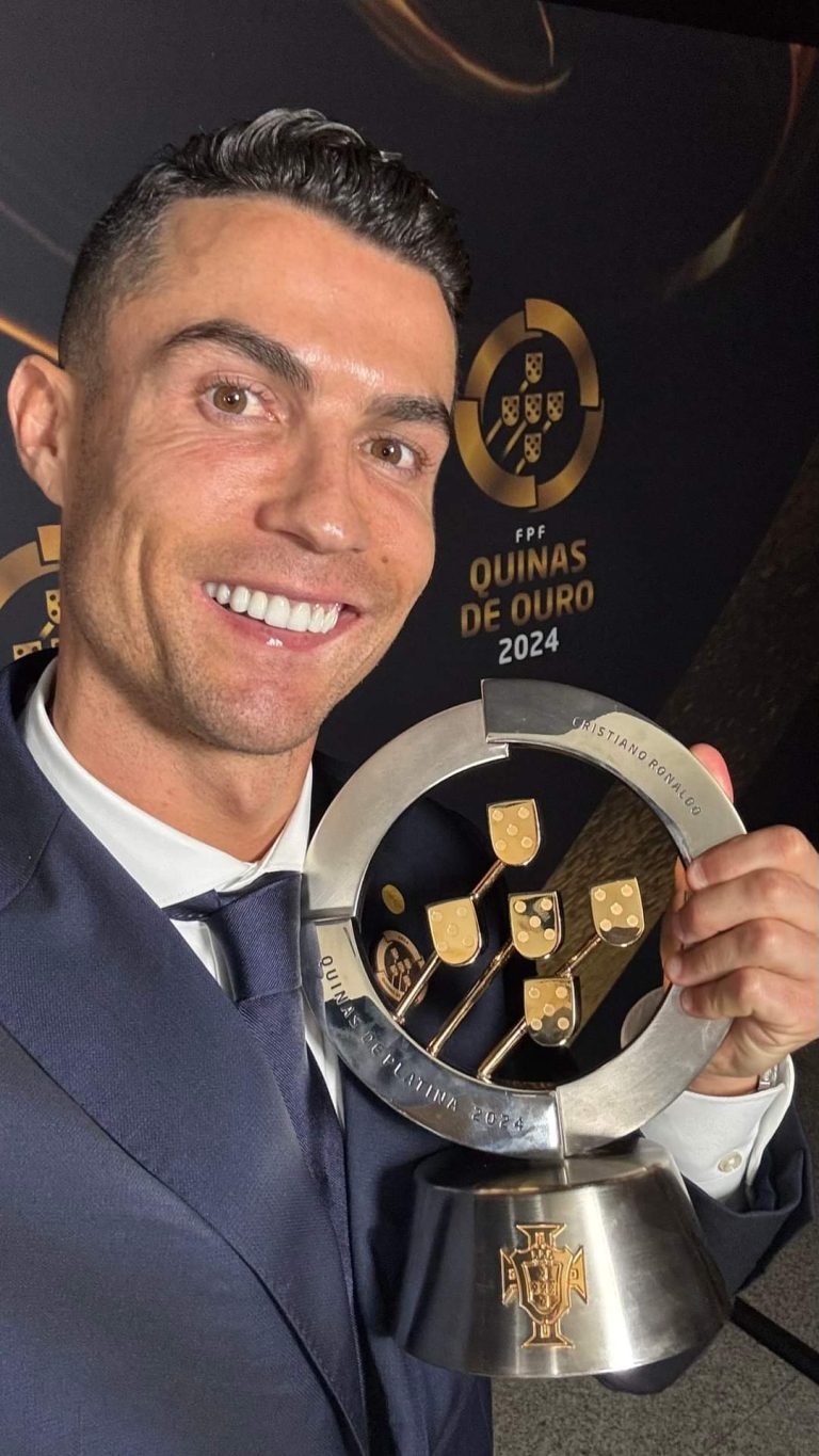 Cristiano Ronaldo, Portugal’s iconic footballer and record-breaking scorer, was honoured Monday night with the prestigious Platinum Quinas trophy at the Quinas de Ouro ceremony, an annual event that celebrates the best in Portuguese football.