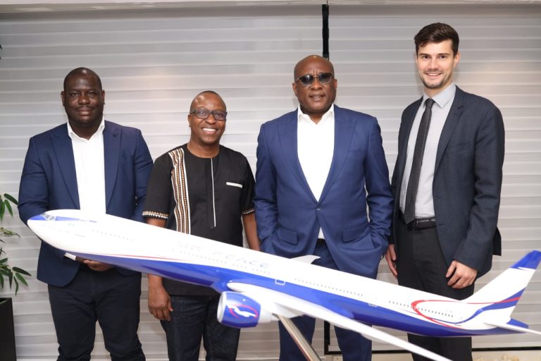 L- R: Global Safety & Regulatory Affairs. Middle East & Africa, Harrison Debrah; Senior Organizational Consultant and Program Manager, Boeing Global Learning Institute, Harry Magui; Chairman/CEO, Air Peace Limited, Dr. Allen Onyema and Lecturer, Organisational Resilience and Change, Cranfield School of Management, Dr. Fabian Steinmann when The Boeing Group paid a courtesy visit on Air Peace in Lagos recently.