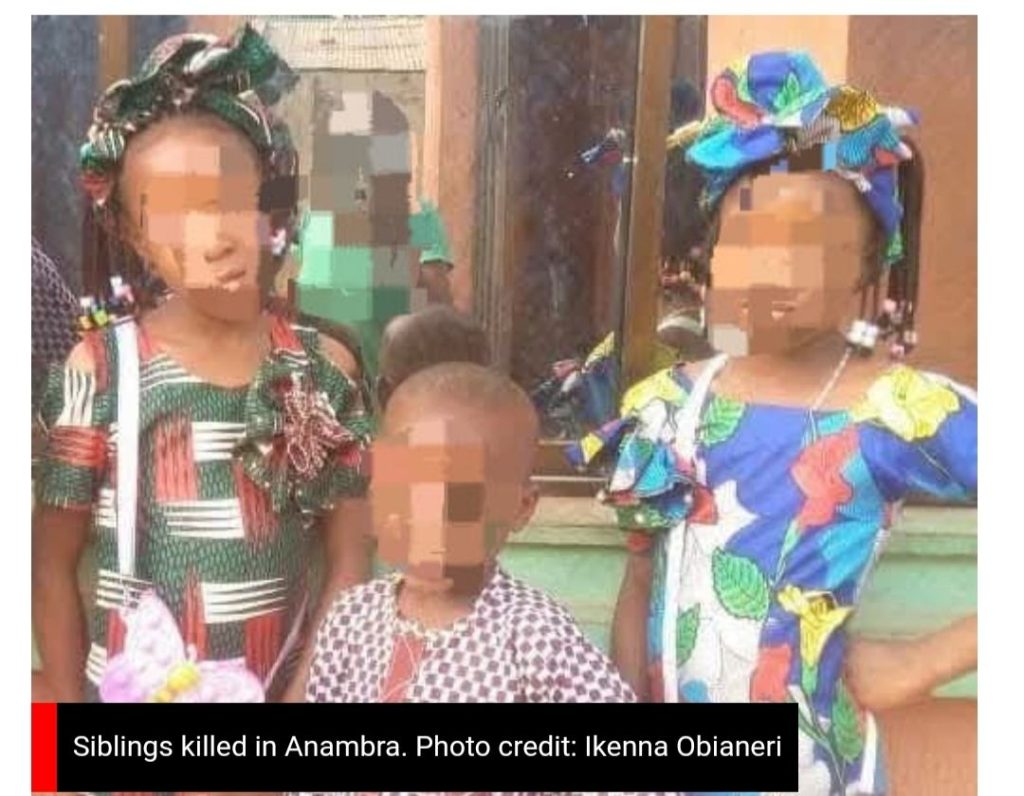 A tragic incident occurred in Nnewichi, Nnewi North Local Government Area of Anambra State, on Saturday when unknown attackers killed three siblings—a five-year-old boy and two girls aged seven and nine.