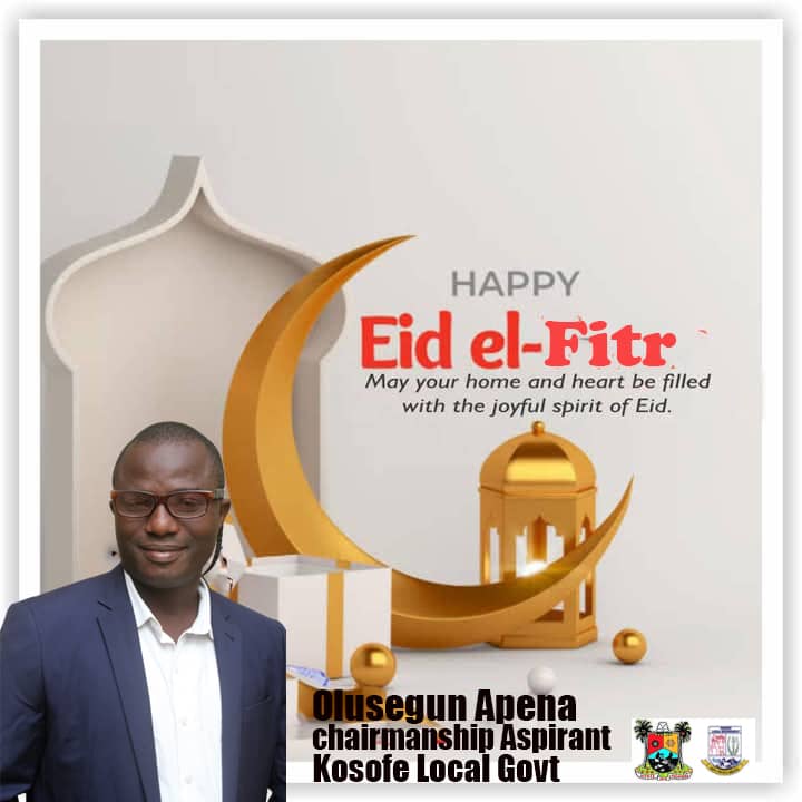 As we mark the end of the blessed month of Ramadan, I, Olusegun Apena, Chairmanship Aspirant for Kosofe Local Government, extend my warmest greetings to the entire Muslim Ummah on this joyous occasion of Eid-el-Fitr.